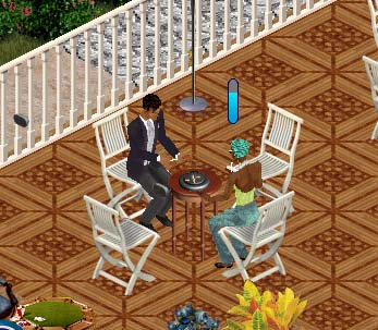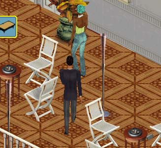Christine grabs Gerry away, Ray is picked up by the matron with the orange fur, & Adam finds himself smoking again, this time with Monica, editor of WhooNoo magazine, the most important Hollywood, Romance & Style magazine in Sim Nation. Steve detests cigarettes: Adam knows he's going to pay for this when he gets home, there will be no way to hide the smell of smoke from Steve.