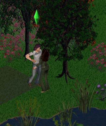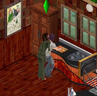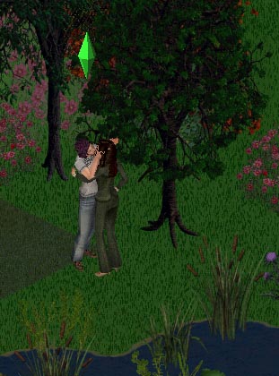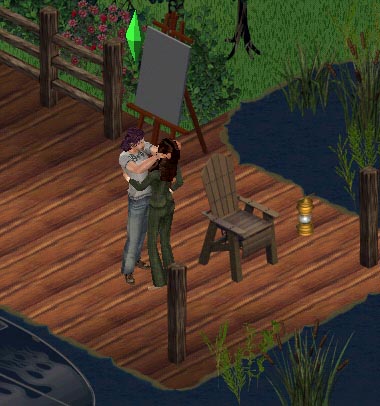 Director's Commentary: The "Lake Tahoe" scenes, both the house & the 'town' scenes were shot in "Neighborhood 2" which is a neighborhood I use for lot building & testing objects. (California Simmin' neighborhood is Neighborhood 3 in my current installation). The house is my Lake Tahoe house from Livin-it-up, and the DT lot I used is my "Apponaug 4 Corners" lot, also from Livin-it-up. The DT lot I used exactly as it is on Livin-it-up, but I made some changes to the residential lot: I replaced Maxis counters & the double bed with the hacked "Love" versions available at M&M Needful Things, and I added the grass "Love Rug" to the lake shore area. To do that I had to move some plants & trees around. The counters have a variety of interactions for your Sims: they all result in an adult activity, but in some scenes I show just the initial animation, like when Eleanor embraces Justin while he's chopping vegetables. The counters also allow 'sit', when one Sim is sitting on the counter, another can come & 'make out' which results in adult activity. In some scenes I just have Eleanor 'sit' & never complete the activity. I just cancelled 'sit' out of her queue when I was done with the scene. And of course I do show a full 'love' scene on the counter as well. Also, Justin's Red Mustang in the garage is by Cravze at Livin-it-up. I was also using a new hack by Gnohmon at Livin-it-up, called 'yakyak': it is a recolor of a MM table, and in any room you place it in, the Sims will get talk bubbles over their heads & gain social & relationship points. So all scenes where Sims seem to be engaging in conversation while doing things they cannot normally talk while doing, like Justin cooking & talking, the yakyak is making it happen. Sims will discuss all topics, not just their interests, including children's topics, and they always have positive opinions. |
