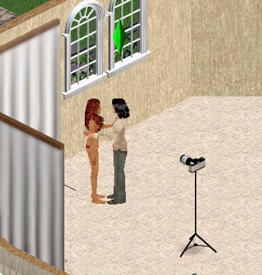 I am using new Social Interaction hacks by Gatur at M&M Needful Things yahoo group. There is a growing menu of new interactions with new animations. These hacks are not attached to any object you buy: once you install the iff & the animations, they appear in your menu when you click on another Sim. Here I'm using Flirt/Caress and a rejected attempt at Kiss/Makeout, lol. Some of the interactions are 'adult', and there are also new Dance interactions & a wider menu of kisses. |
