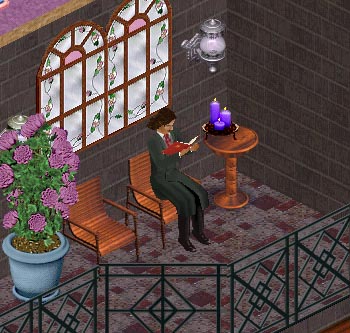 Serena returns home to find Larna Lock sitting on her balcony, reading. She sighs sadly: she's going to have to get him some more contemporary clothes if he's going to be visible all the time.