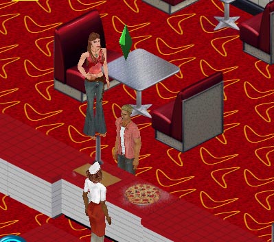Though it is totally against policy to socialize while undercover, he buys her dinner. (pizza & ice cream parlor by Colorized Sims)