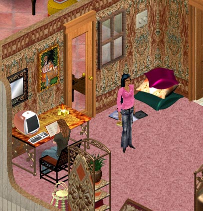 Arjun is paying for the flight & hotel, and Zach accepts that readily enough, but he draws the line when his mentor offers him 1,000 simoleons cash for 'expenses'. "You know I can afford my own trip to Denver, Arjun," he says with a laugh, "I'm letting you pay for the travel because this is a family matter, but I can't take your cash like that." The guilt weighs on Zach, he's never liked having to hide how he feels about Meera, being a trusted friend & treated like family, while secretly...well, he hasn't done much more than kiss the girl, his conscience and her youth have prevented any serious physical intimacy. But just the fact that he thinks about it makes Zach feel unworthy of Arjun's trust & respect.