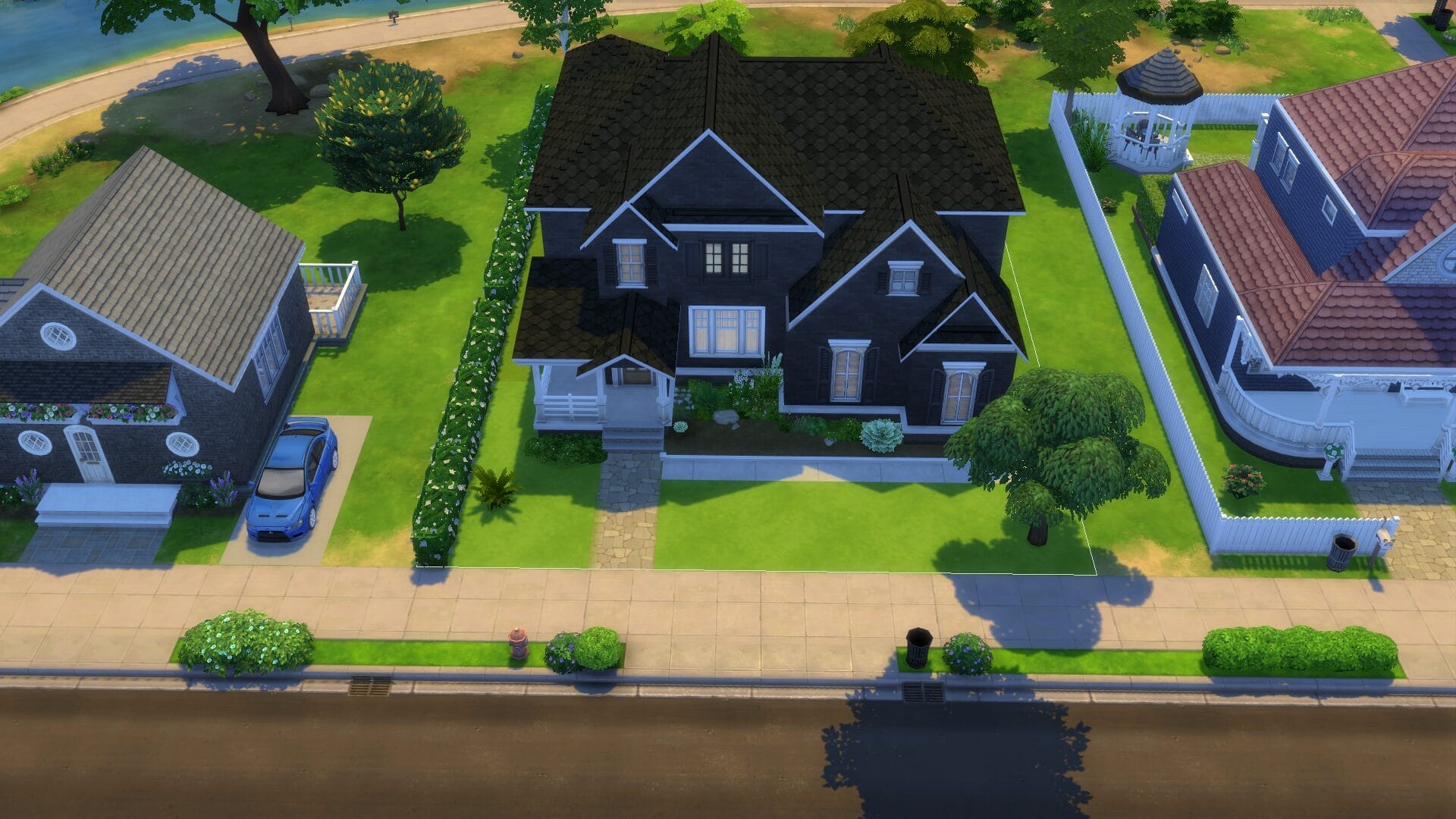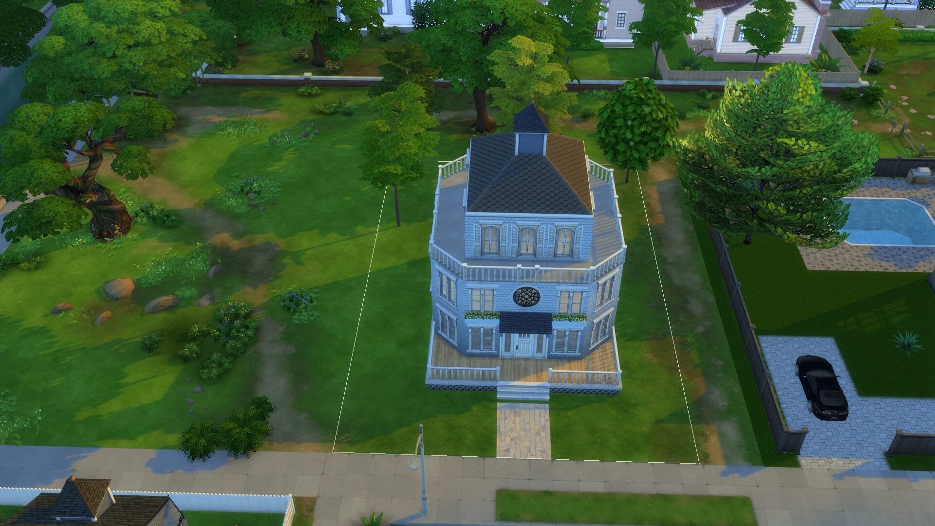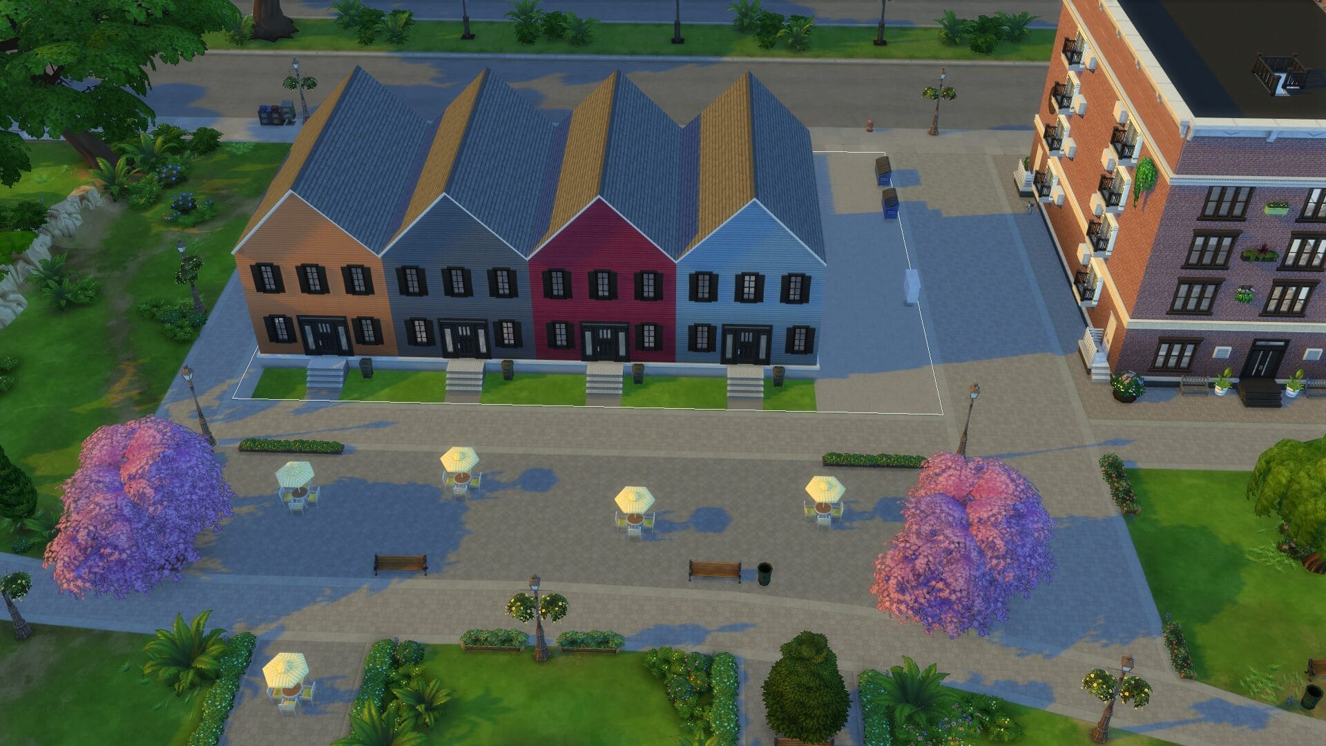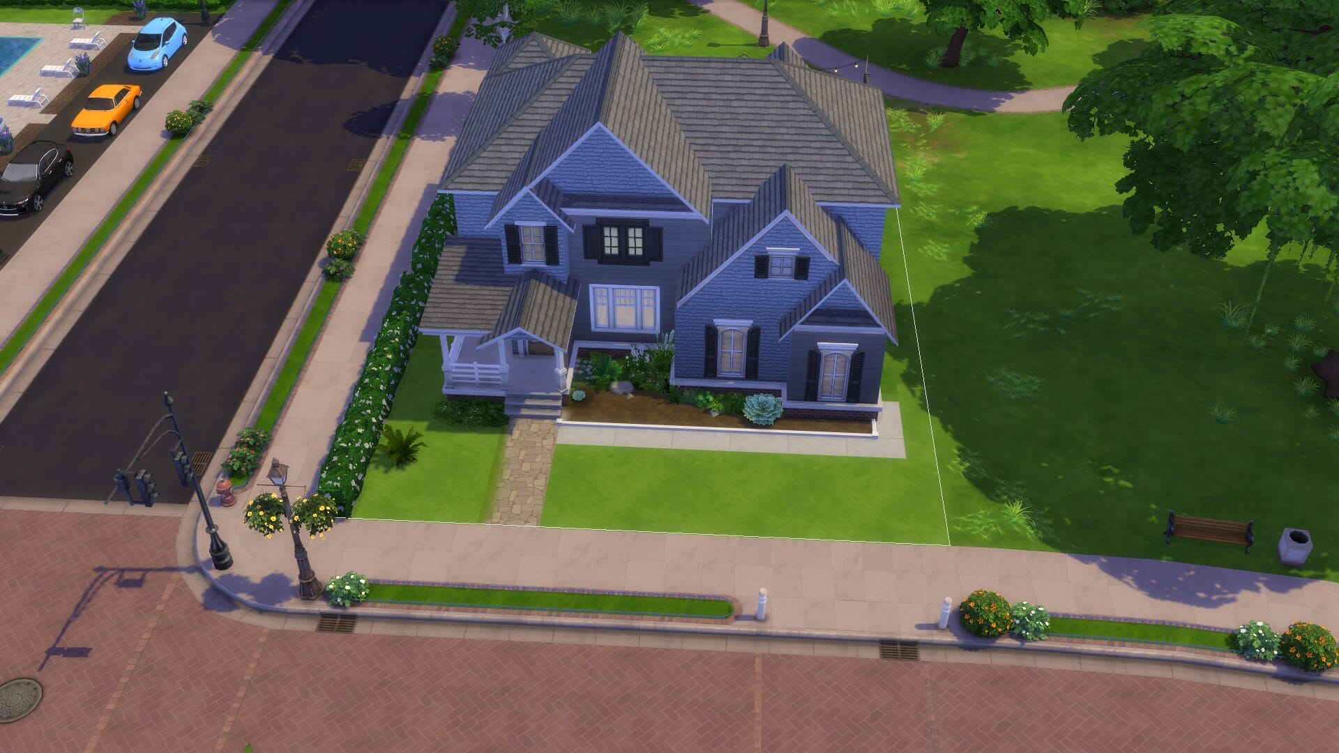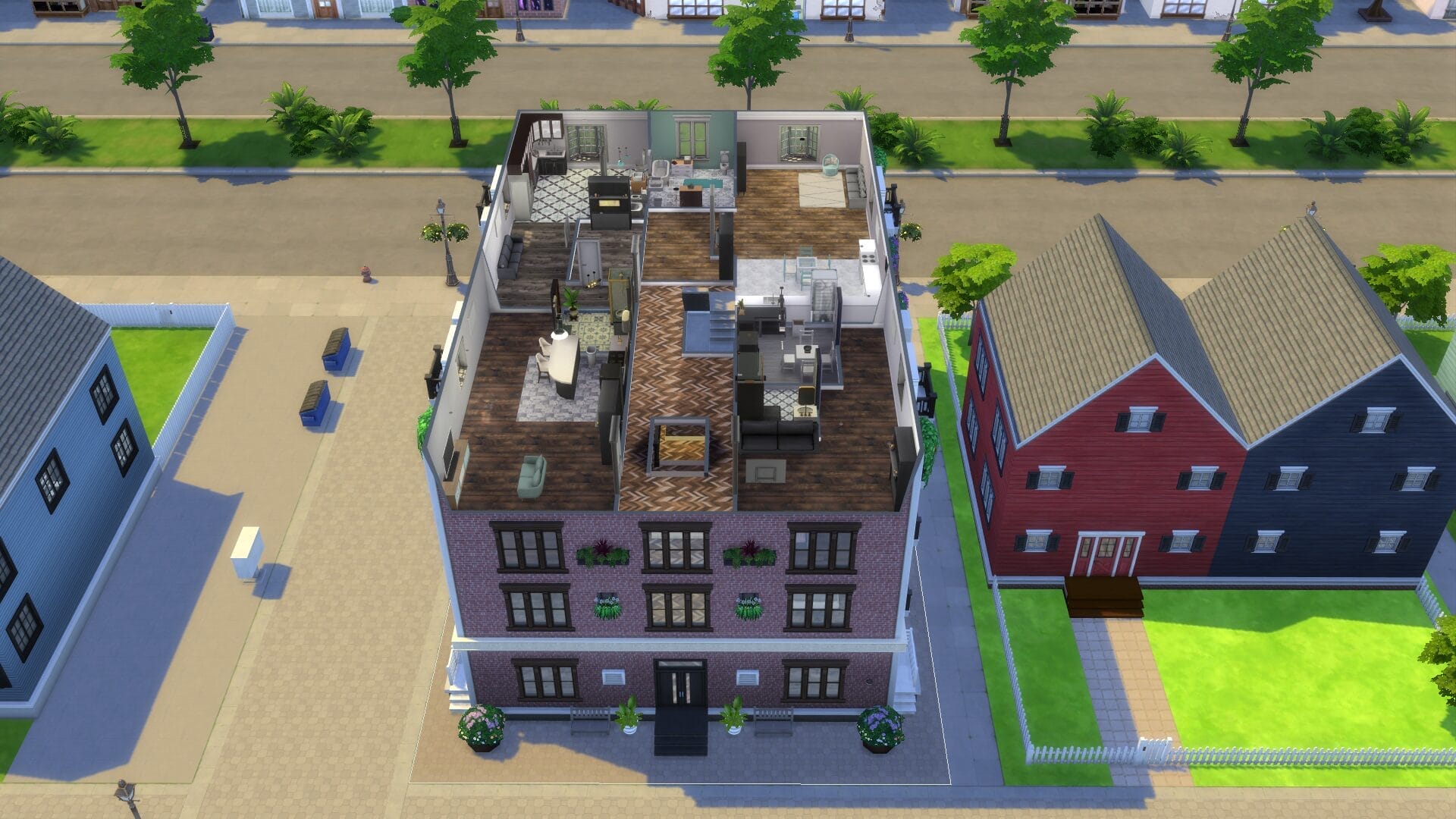 This project took about 4 years start to finish because I only really played when in the mood. I find it relaxing to open sims 4 without a plan and build an entire building. Usually I had no plan before I started, and just went with whatever mood I had. I did keep some of the charming house types, and and I love a colonial feel in general. My build style I’d say is a mix of traditional, victorian, french-provincial and a modern contemporary. I have no fixed style but I tend to gravitate toward a semi-maximalist approach. Since this was originally on SrslySims’ blank save, I’ve re-created this Willow Creek painstakingly on a fresh save so that all of your other neighborhoods will be normal. You’ll probably notice that I used a lot of car props. The lack of cars in Sims 4 is probably its most unforgivable aspect for me.