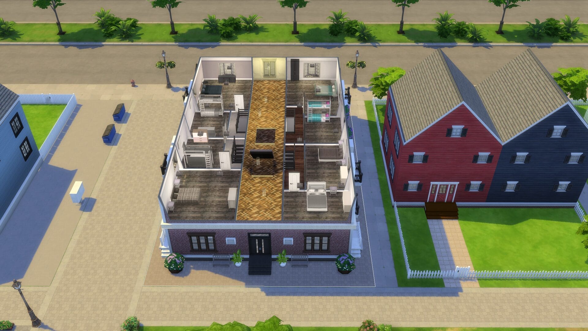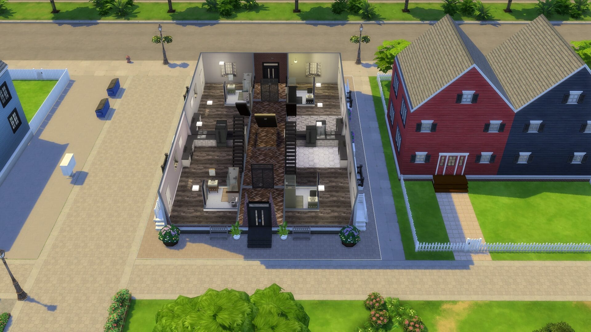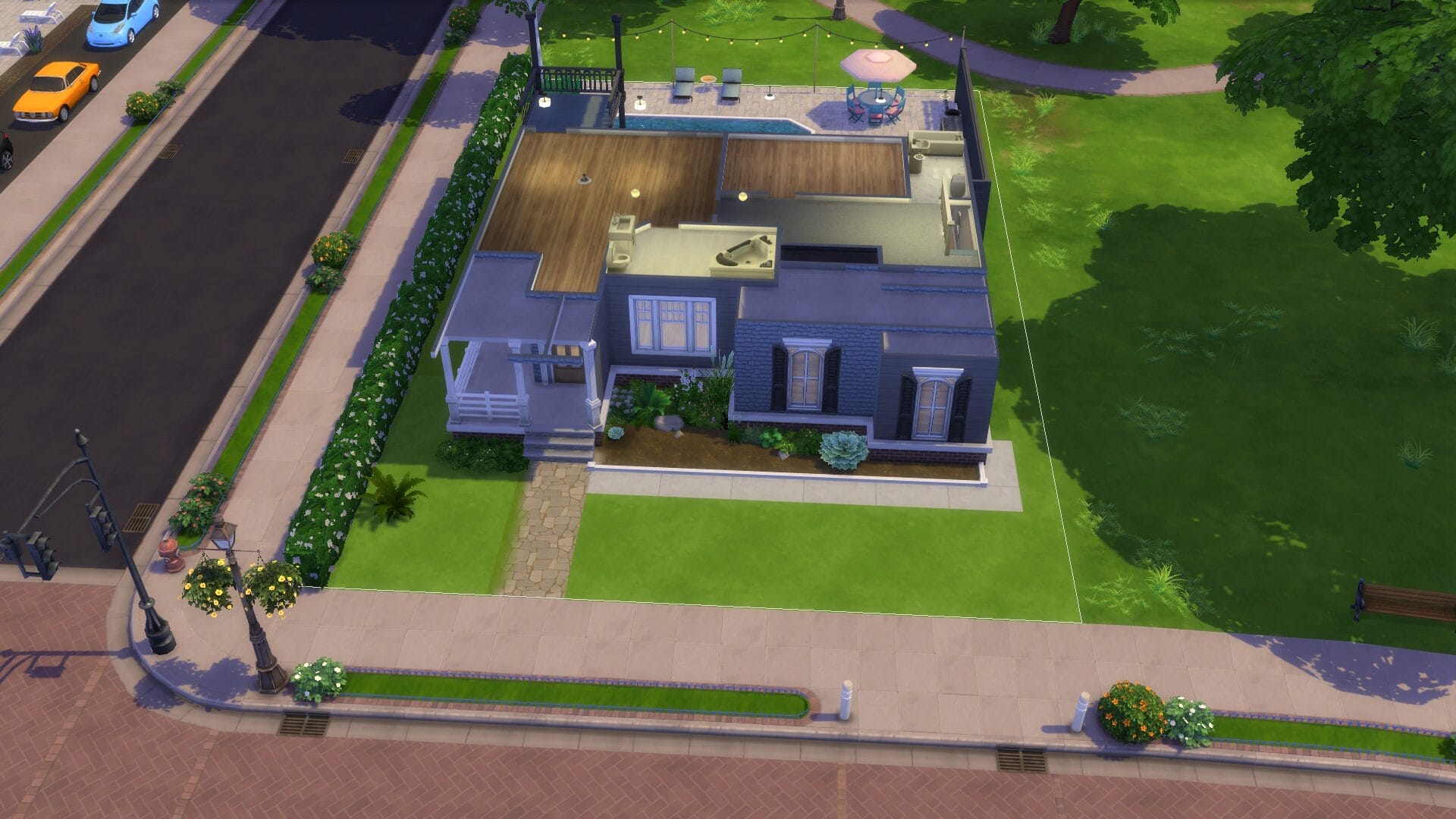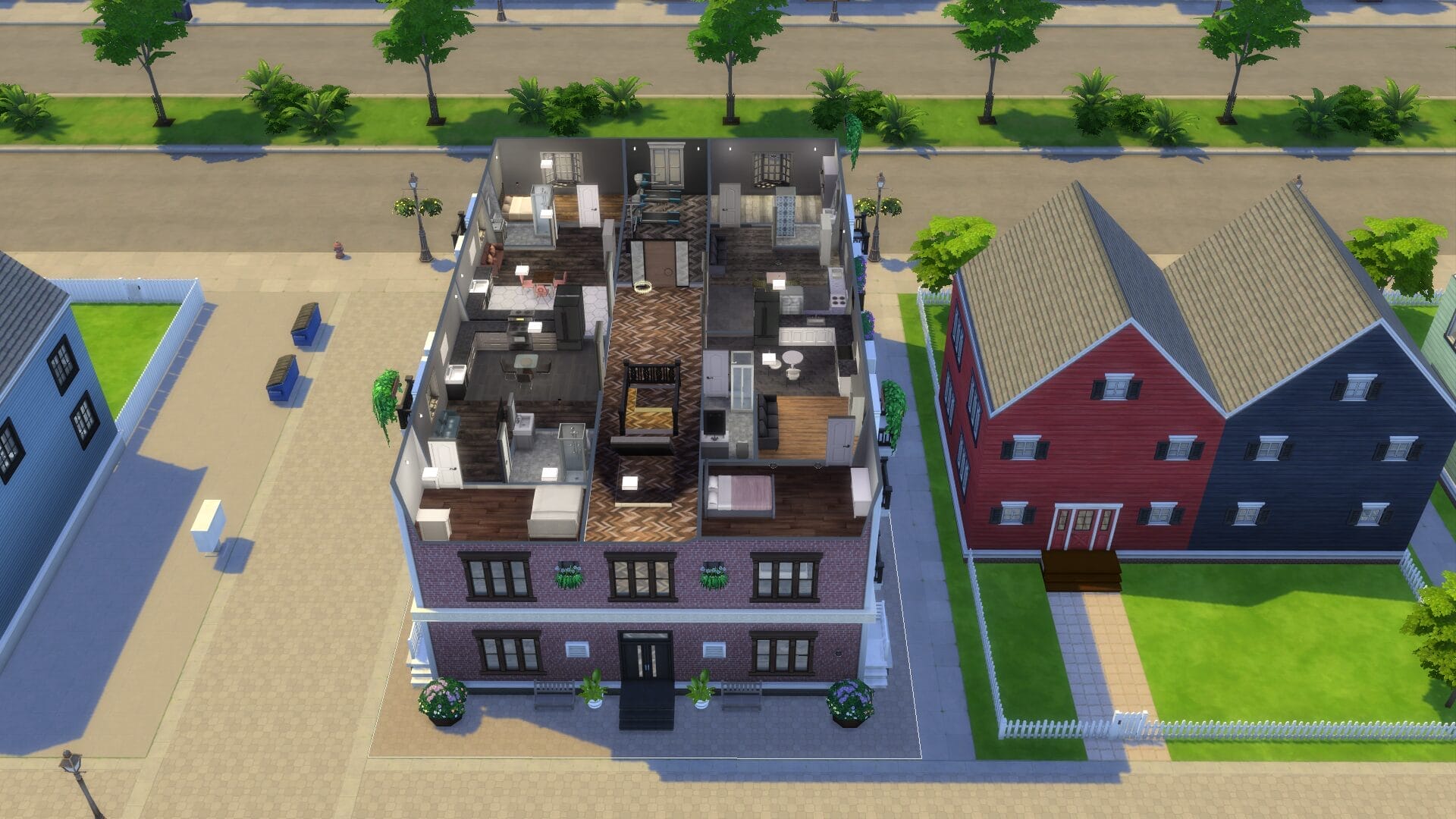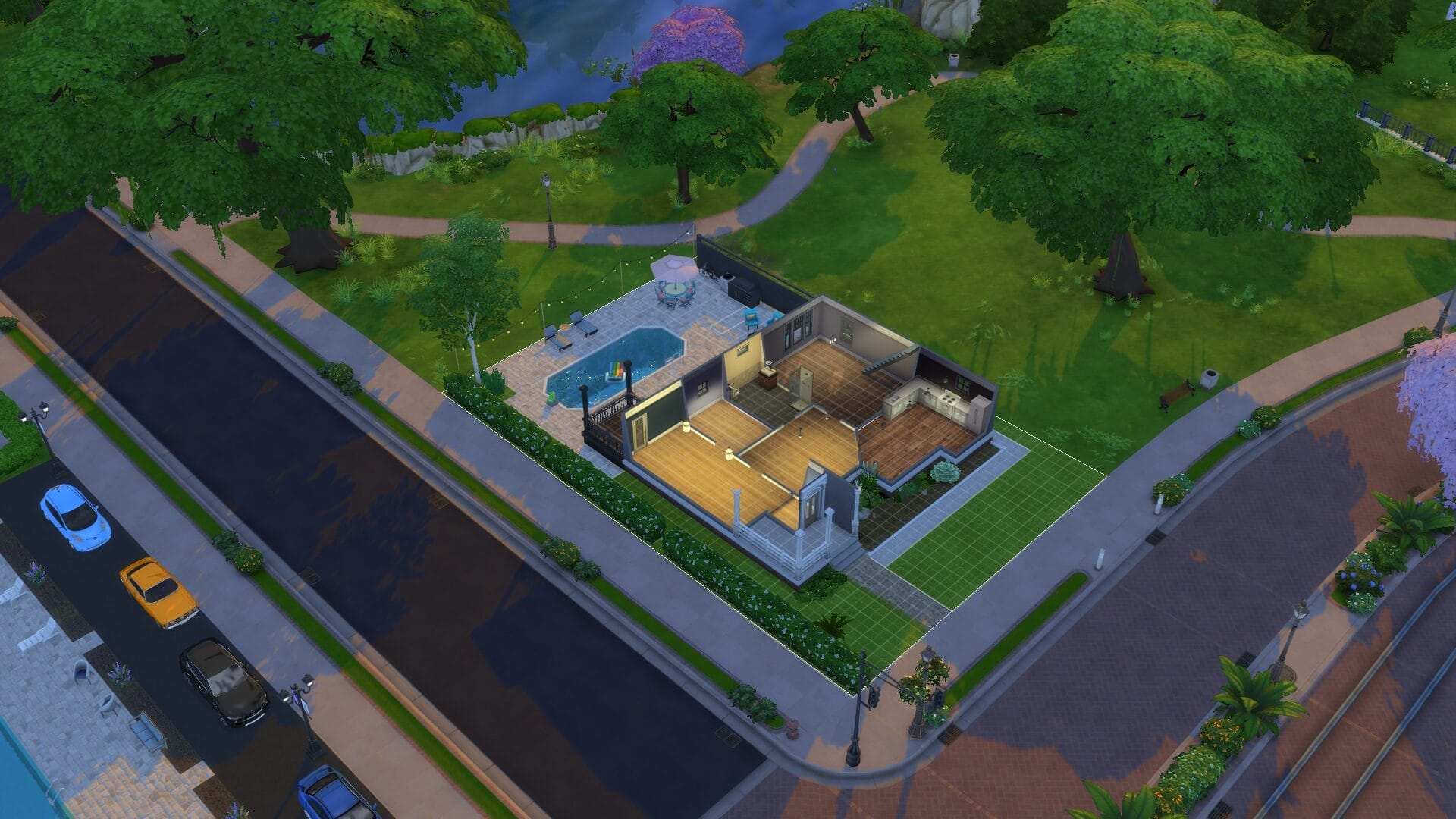 This project took about 4 years start to finish because I only really played when in the mood. I find it relaxing to open sims 4 without a plan and build an entire building. Usually I had no plan before I started, and just went with whatever mood I had. I did keep some of the charming house types, and and I love a colonial feel in general. My build style I’d say is a mix of traditional, victorian, french-provincial and a modern contemporary. I have no fixed style but I tend to gravitate toward a semi-maximalist approach. Since this was originally on SrslySims’ blank save, I’ve re-created this Willow Creek painstakingly on a fresh save so that all of your other neighborhoods will be normal. You’ll probably notice that I used a lot of car props. The lack of cars in Sims 4 is probably its most unforgivable aspect for me.