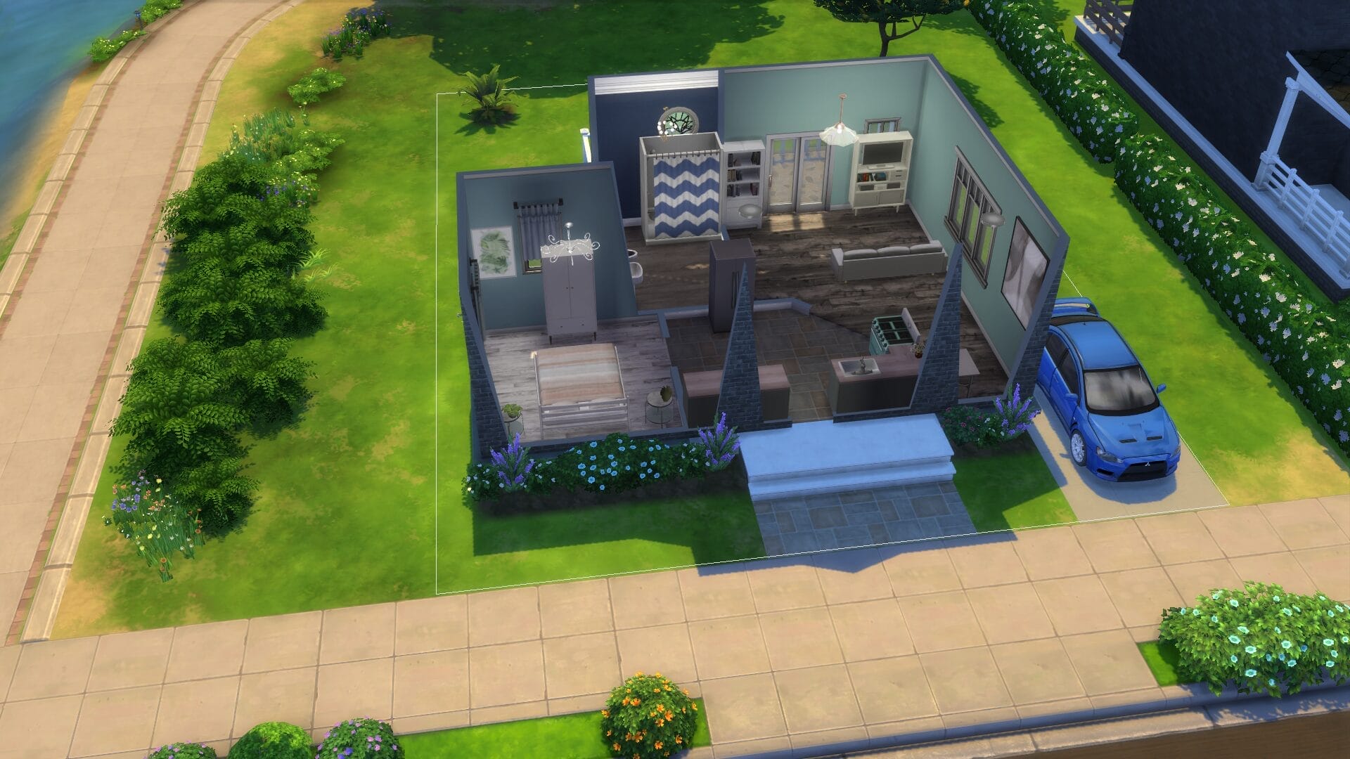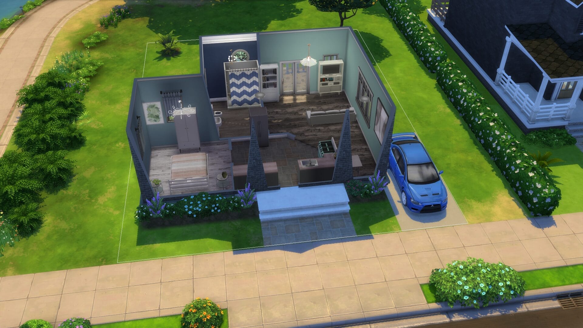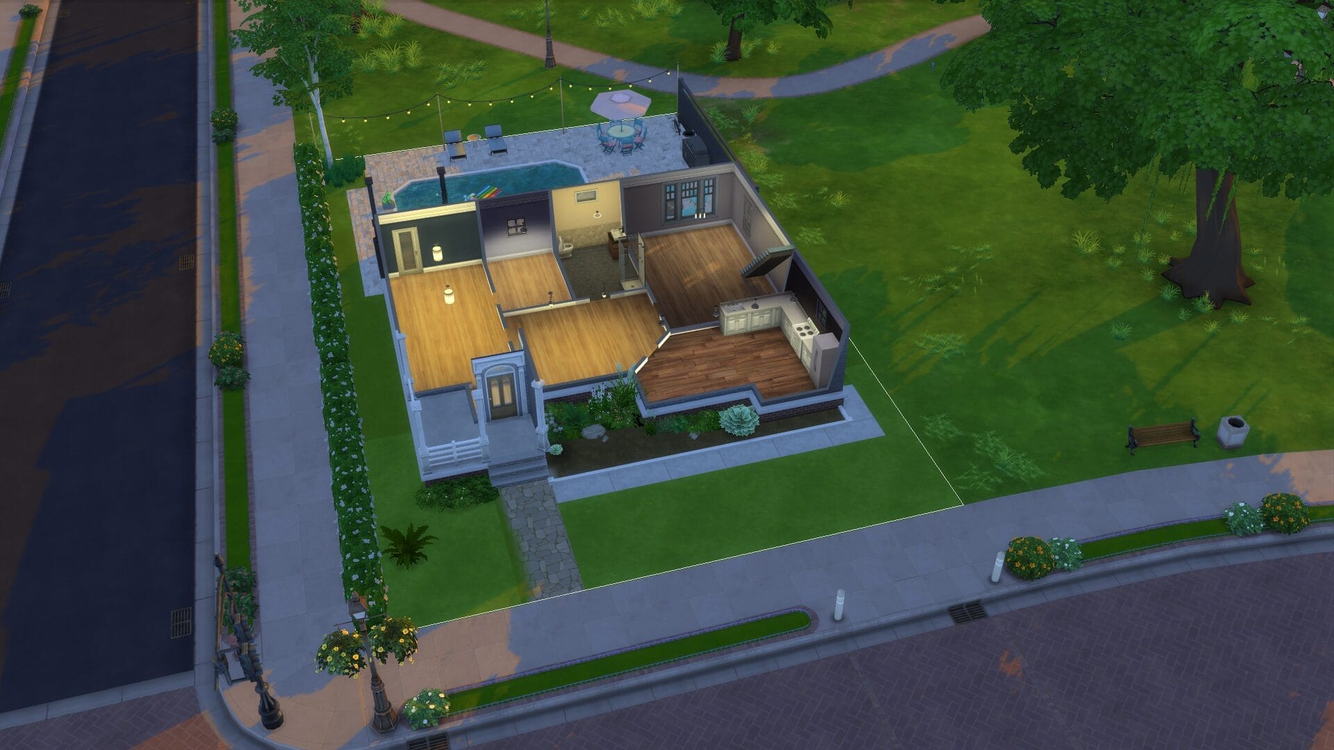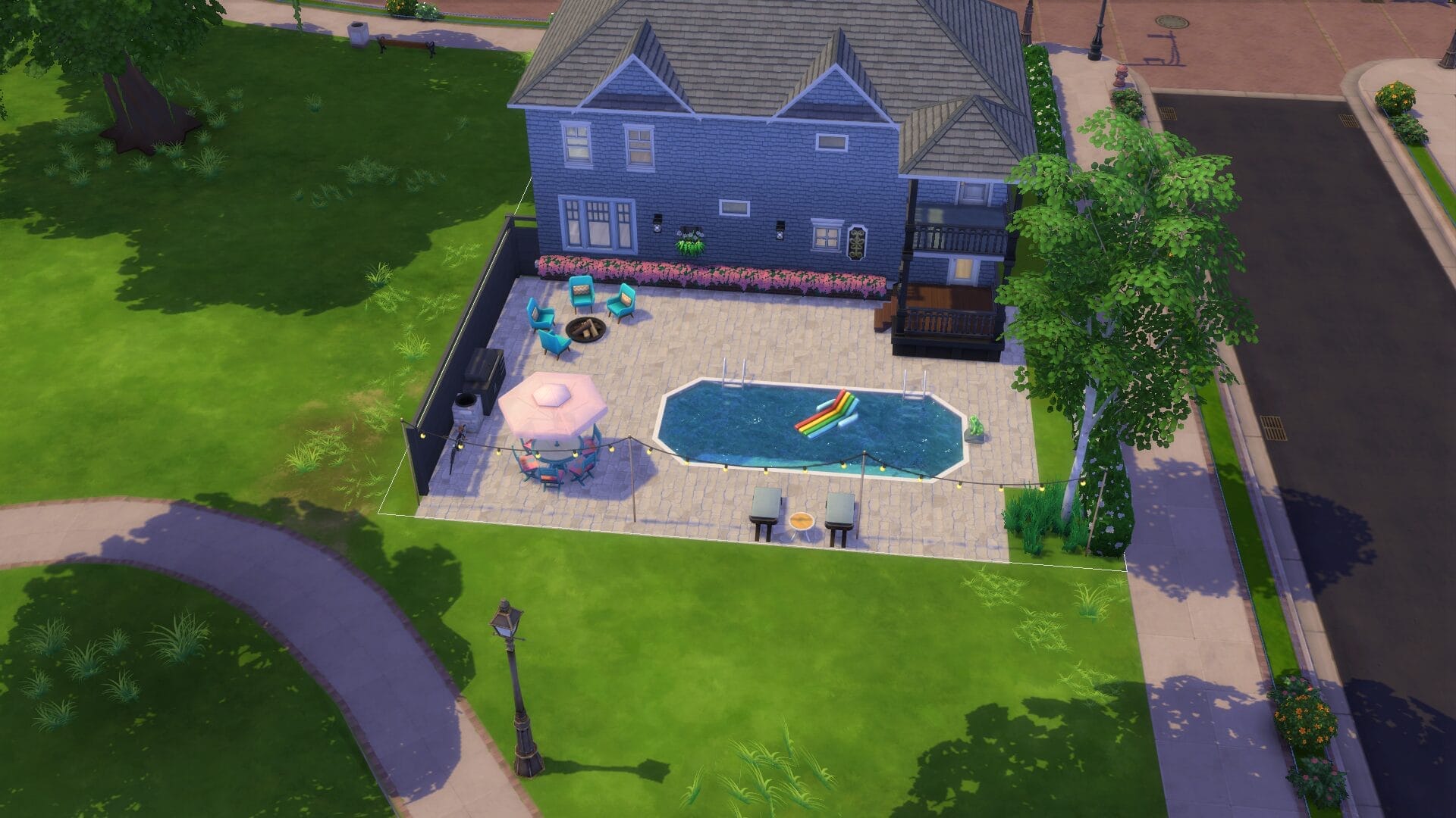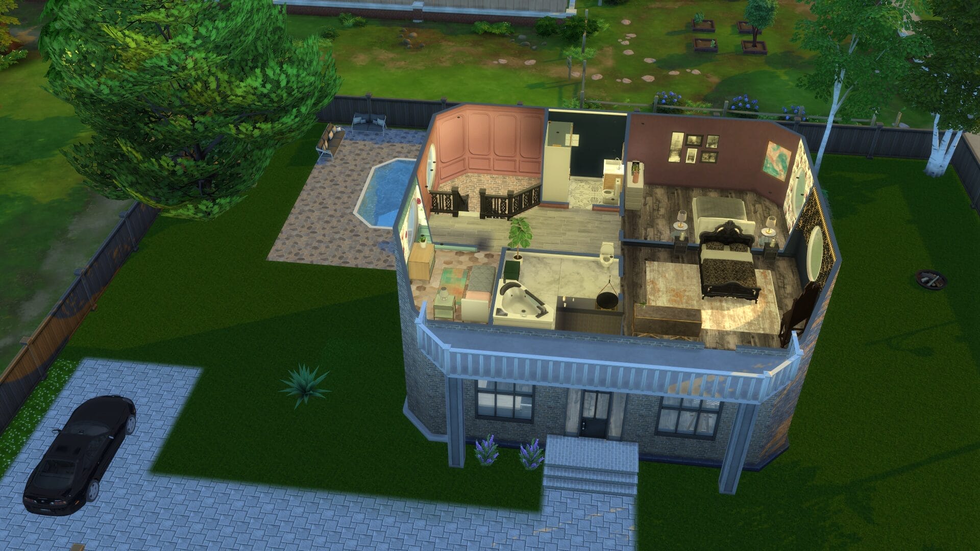 This project took about 4 years start to finish because I only really played when in the mood. I find it relaxing to open sims 4 without a plan and build an entire building. Usually I had no plan before I started, and just went with whatever mood I had. I did keep some of the charming house types, and and I love a colonial feel in general. My build style I’d say is a mix of traditional, victorian, french-provincial and a modern contemporary. I have no fixed style but I tend to gravitate toward a semi-maximalist approach. Since this was originally on SrslySims’ blank save, I’ve re-created this Willow Creek painstakingly on a fresh save so that all of your other neighborhoods will be normal. You’ll probably notice that I used a lot of car props. The lack of cars in Sims 4 is probably its most unforgivable aspect for me.