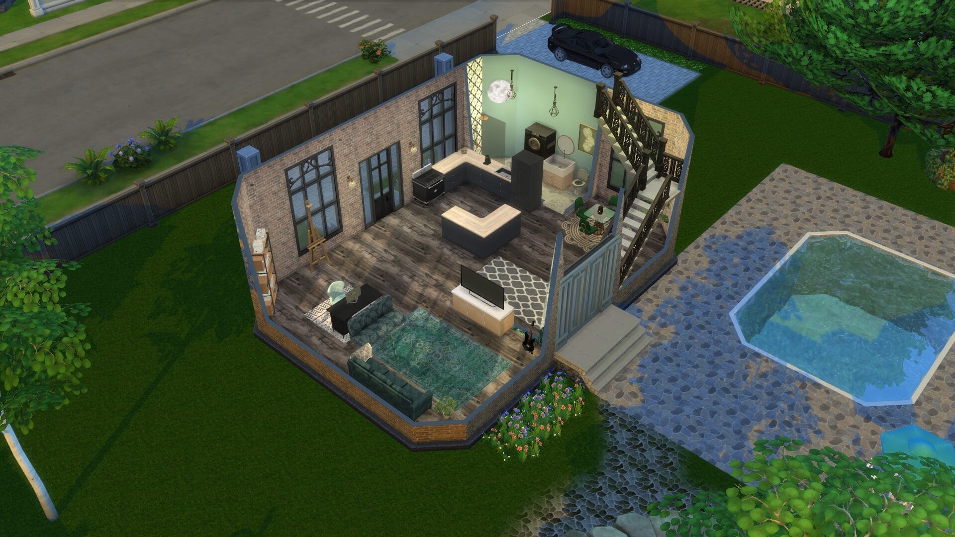 Traditional Paradise is probably my dream home and the sims house I’m most proud of. When I buy and sell houses in the Sims (man I wish they had a House Flipper expansion, this would literally make my life complete), I tend to make them a bit more “realistic”. I don’t often fully decorate my builds because I want them to feel authentic. For that reason I usually only furnish bathrooms and kitchens.