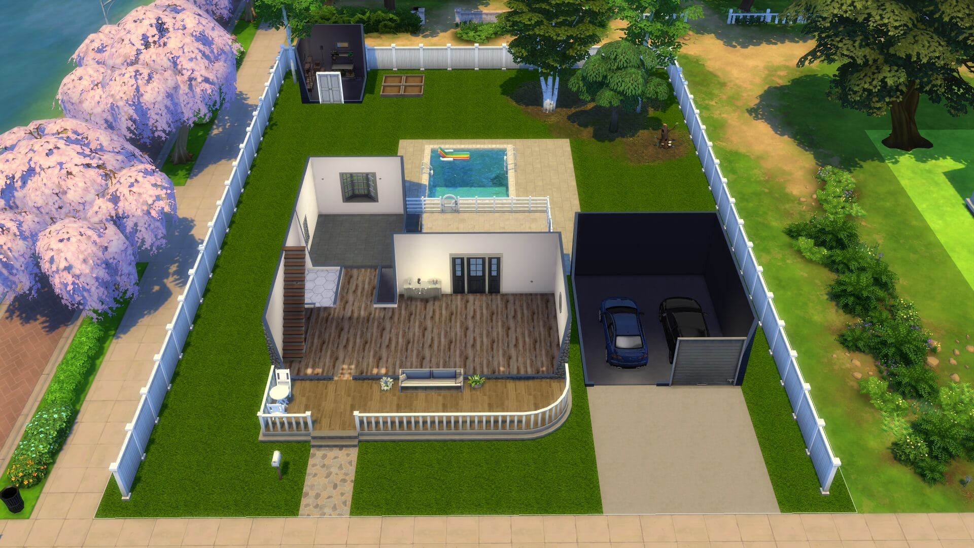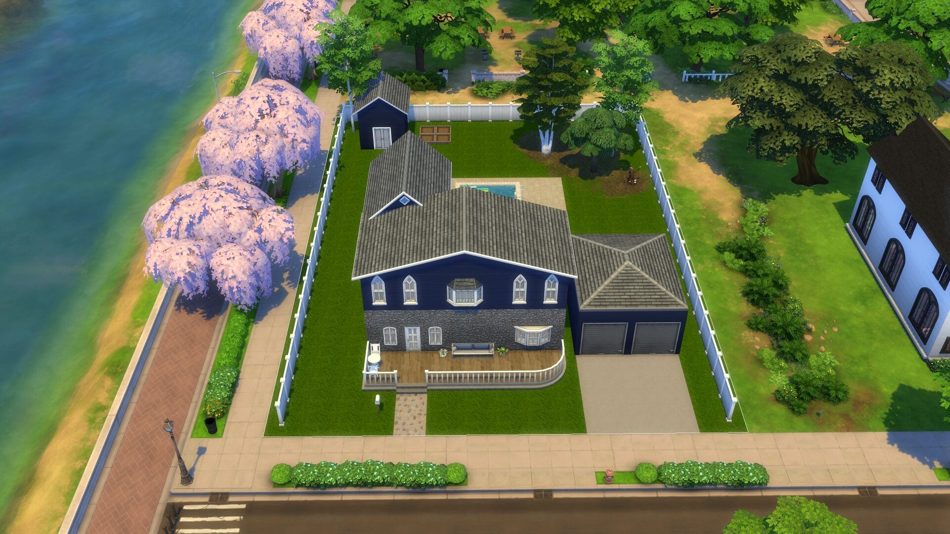 House With 2 Car Garage is a very cleverly named House With 2 Car Garage. It features a small pool, garden shed, and several rooms. I am very uninterested in writing these bios at this point, and thankful that this is the last house. The only remaining item is the church.