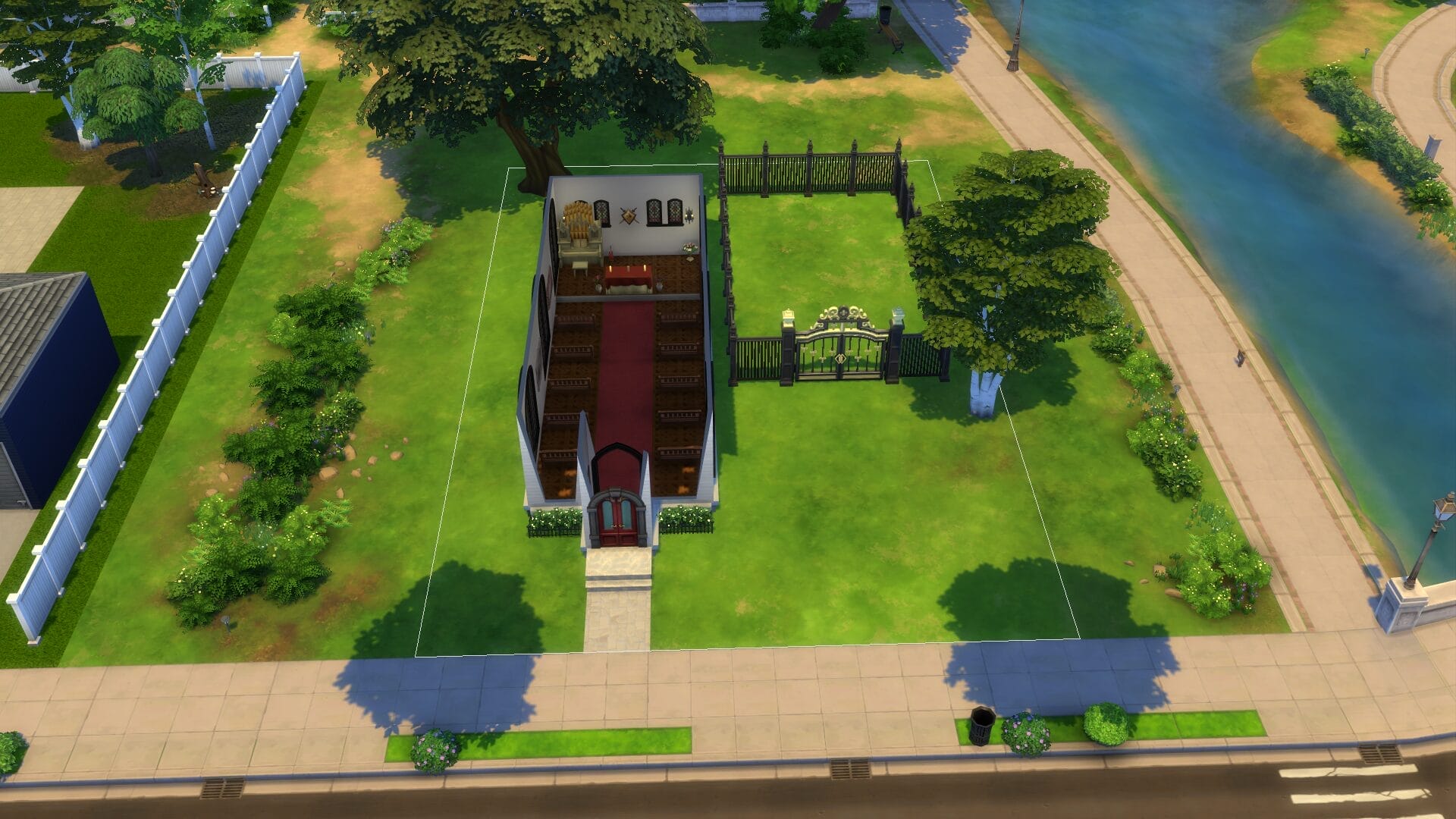 The Holy Sims Church was made to mimic the catholic churches I grew up around. I do not practice any formal religion, but I have always loved churches. This is also a cool lot to put graves on.