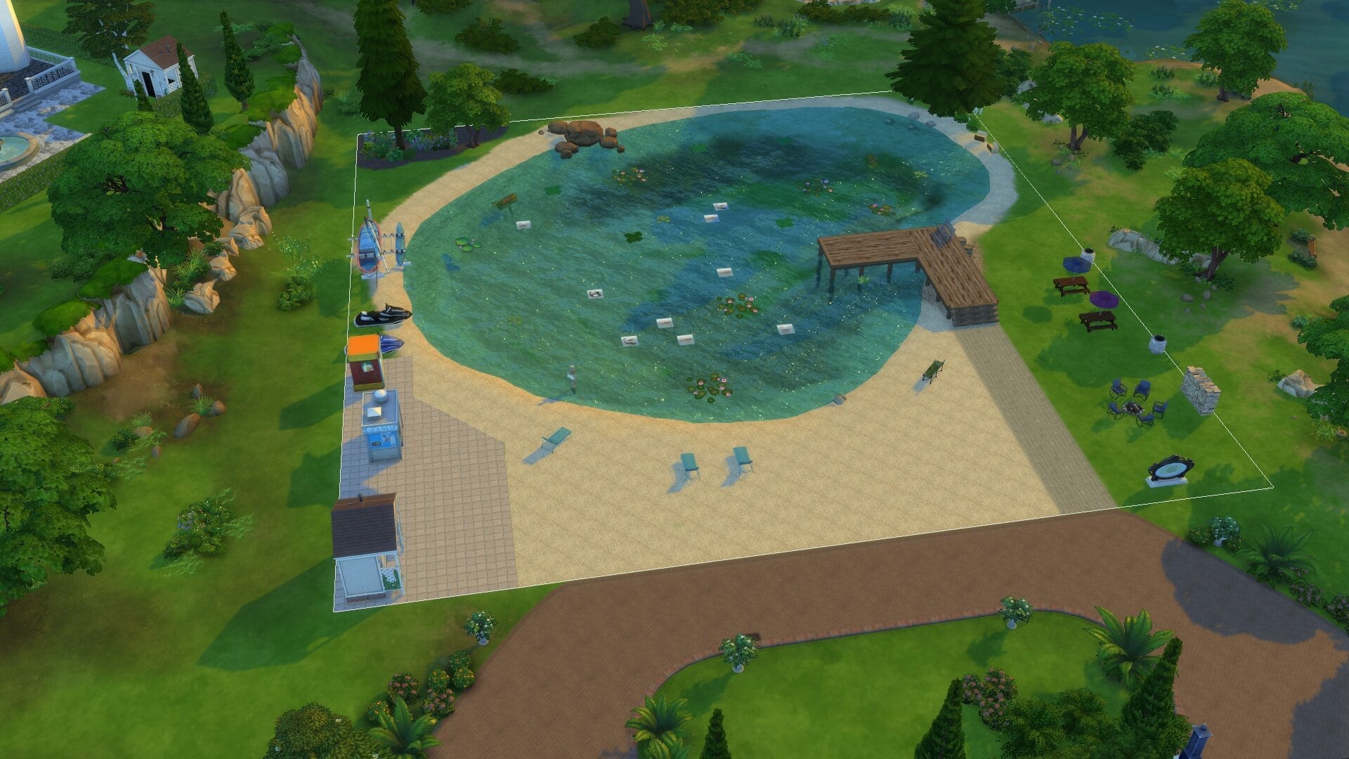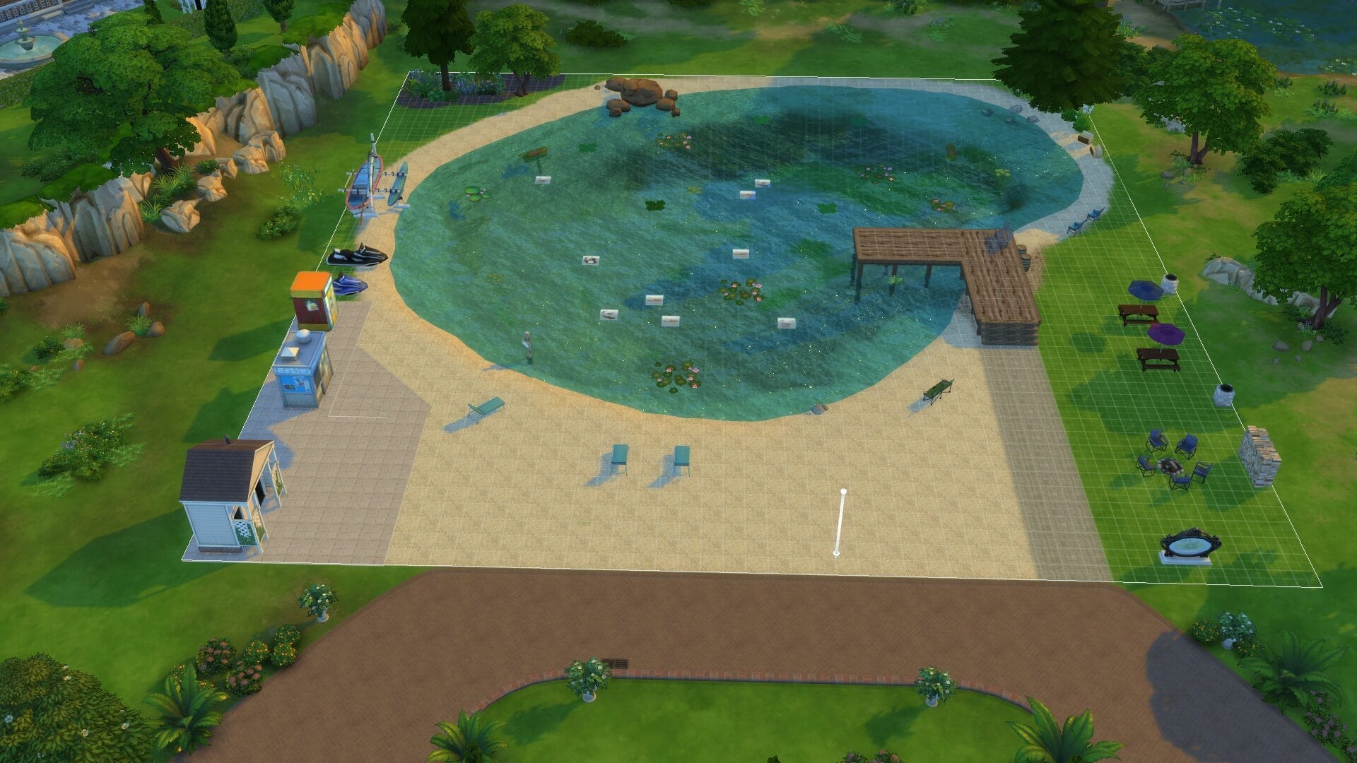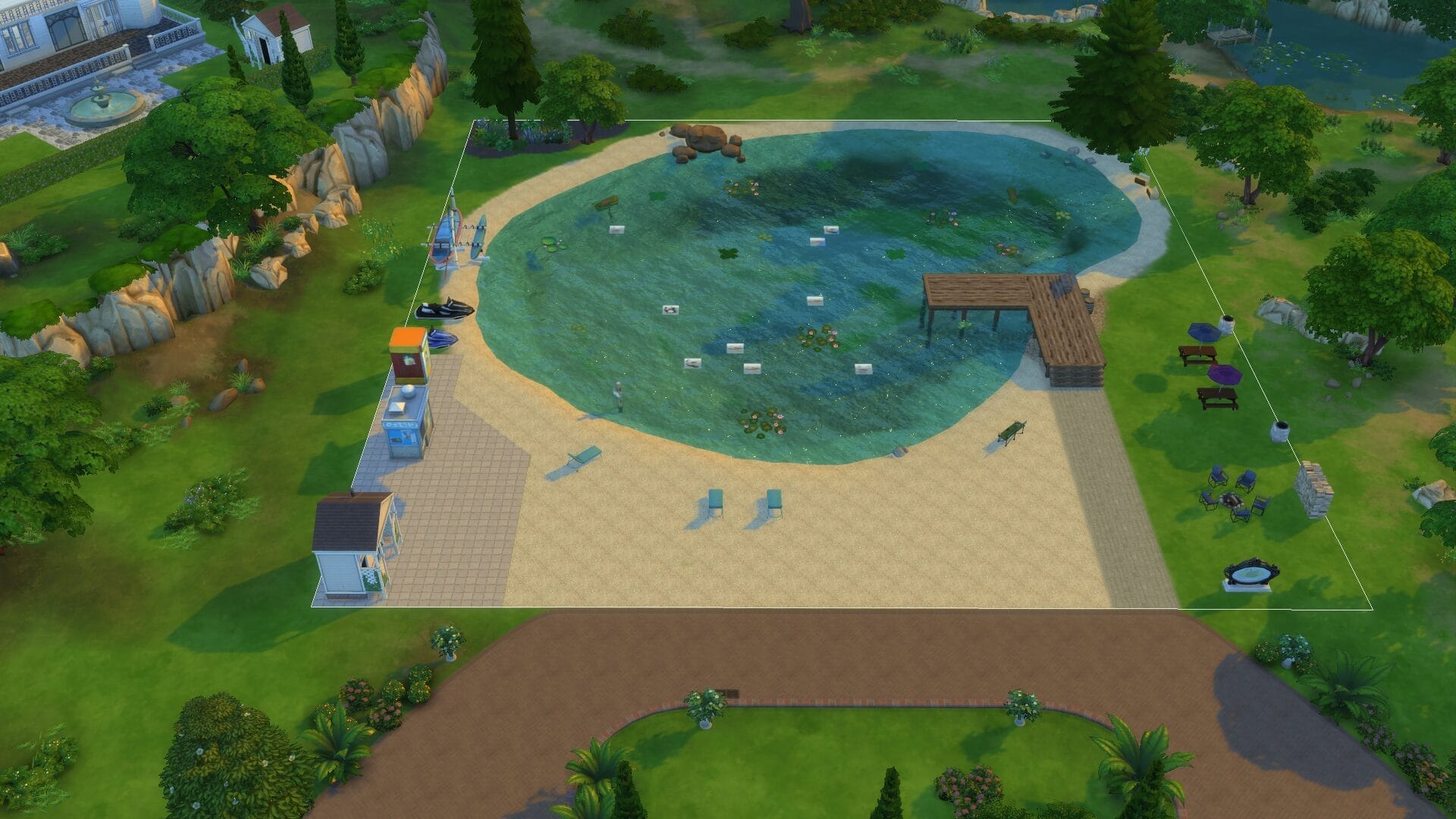 Sir Regent Memorial Park is a name I came up with at complete random and means absolutely nothing. This lake cannot be swum in, but it is beautiful. I might toy with more ways to make it swim-able later, but the pool inside idea was not jiving well with me.