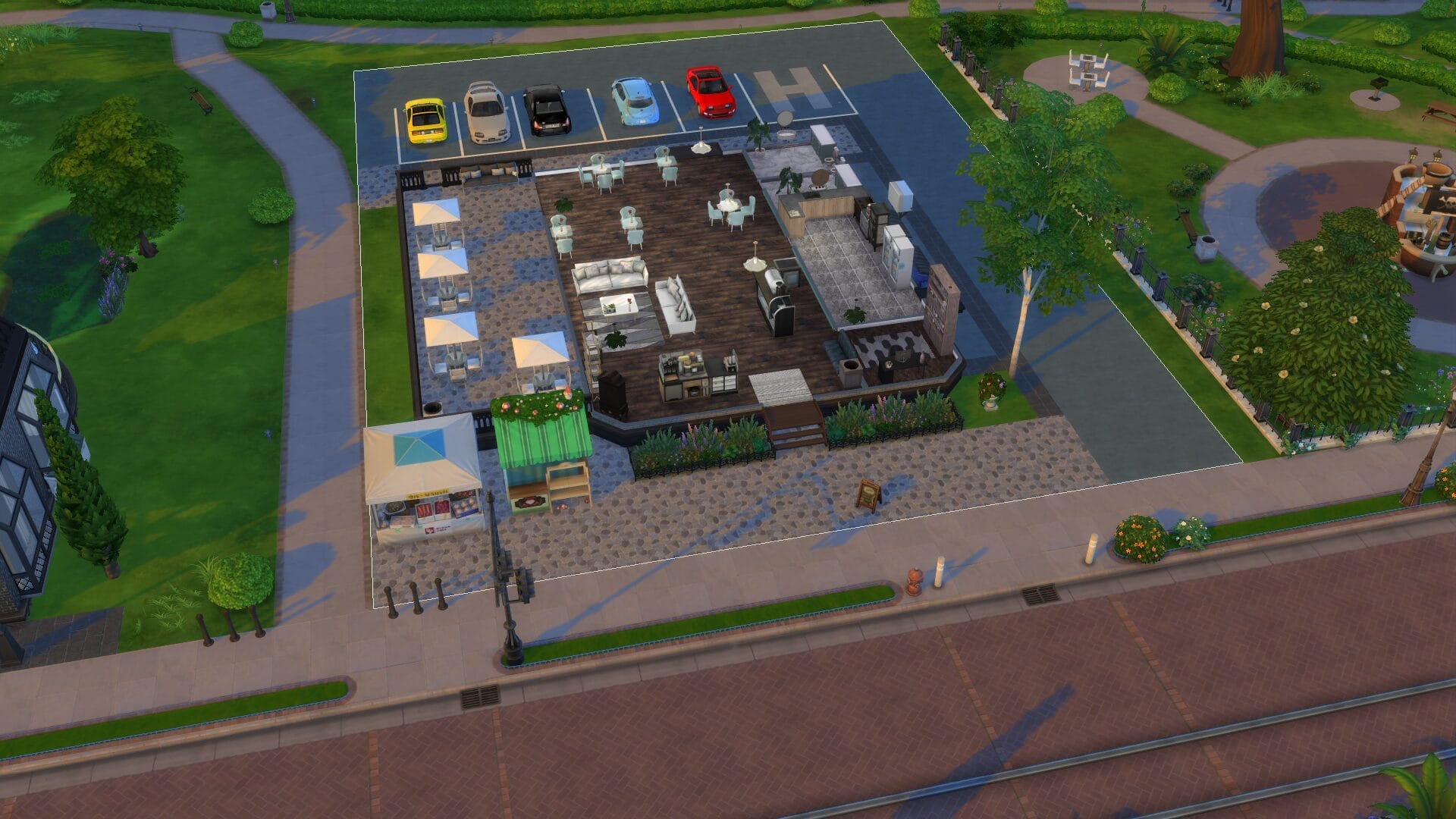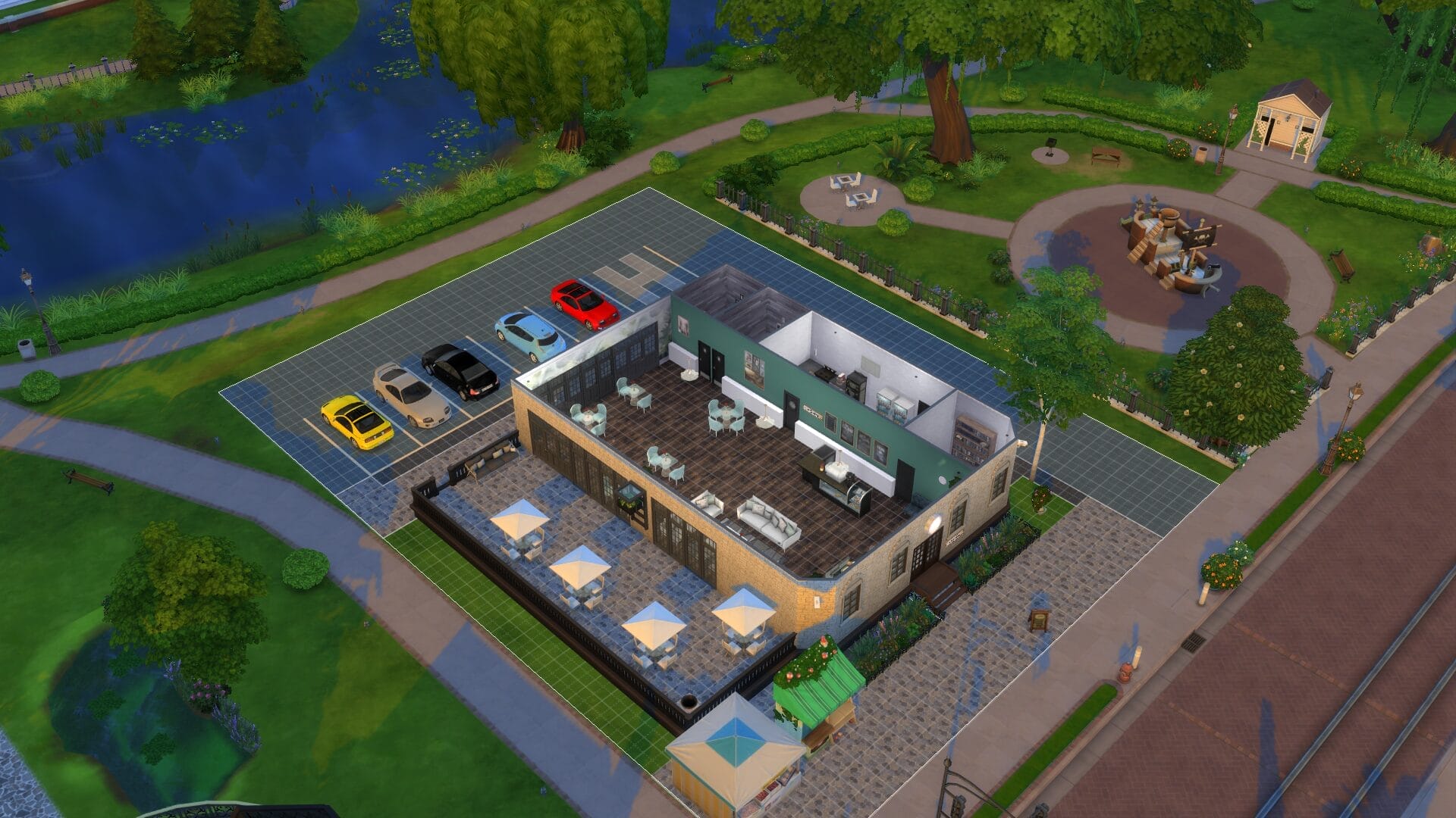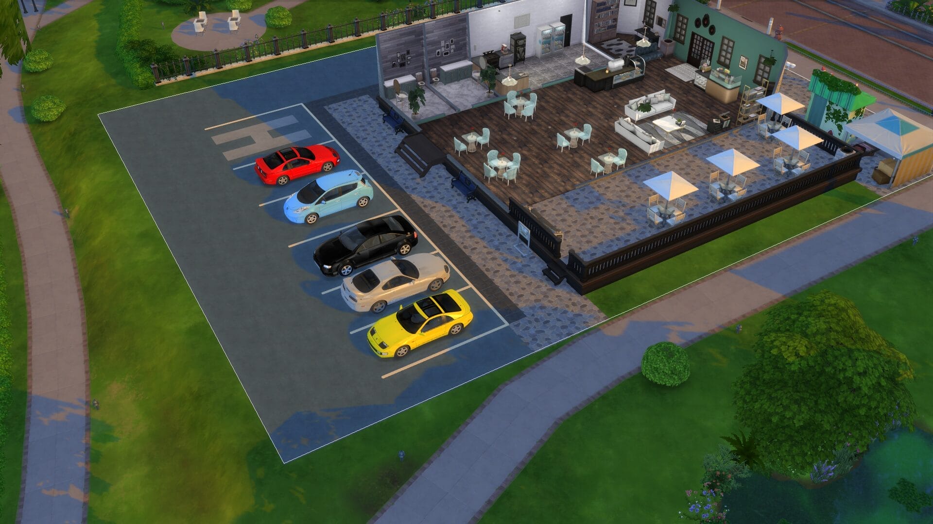 The Cafe Rose – My favourite part of this is the parking lot. I find these little details to make the game more enjoyable for me. I toyed with this being a restaurant too, but since it’s right next to Trendy’s I decided on a cafe.