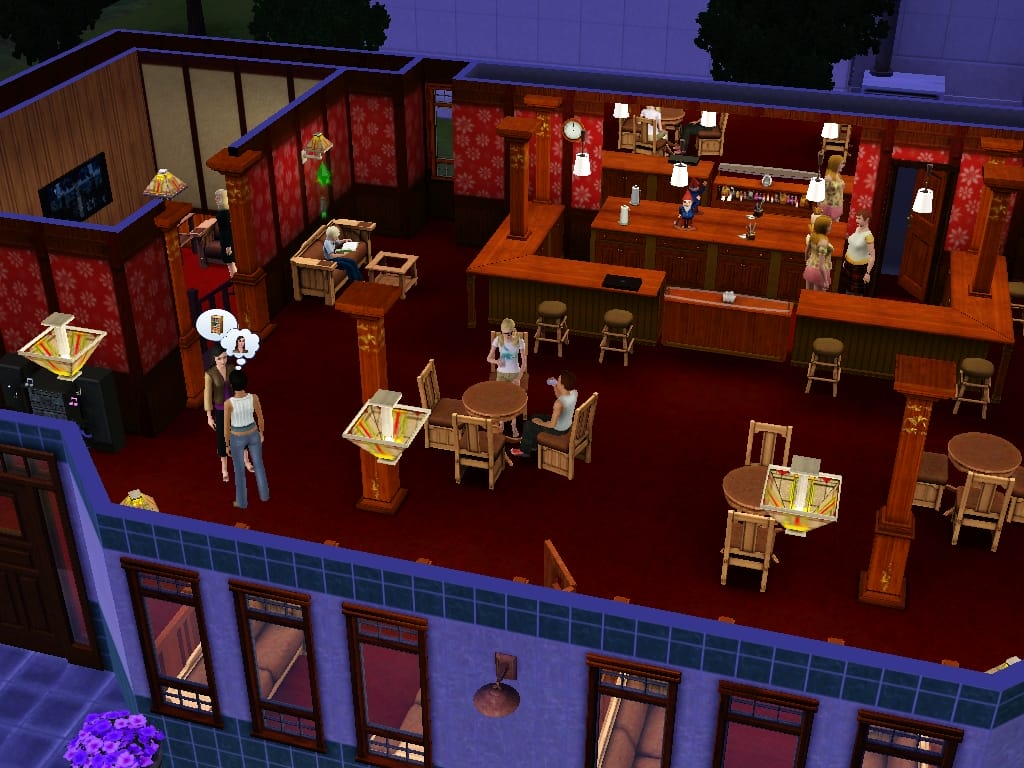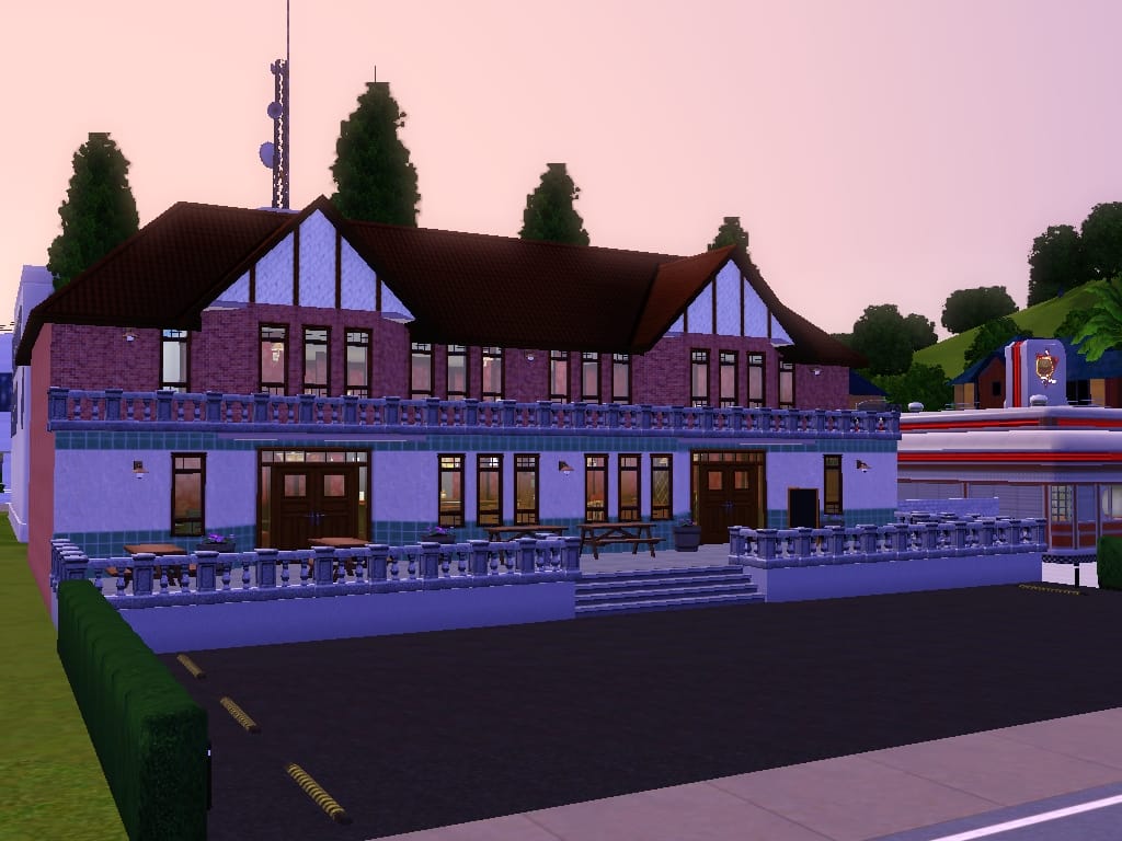 This lot is designed to go on the lot of the original diner in Sunset Valley. I have built a typical English pub on the same lot as the diner. Having the rabbithole on the same lot means you get far more sims visiting than you would on a normal community lot.